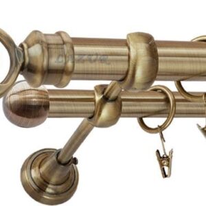 Lazur Karnisz Kula Antyk Mosiądz, Podwójny 16 +16 Rura Gładka 180cm