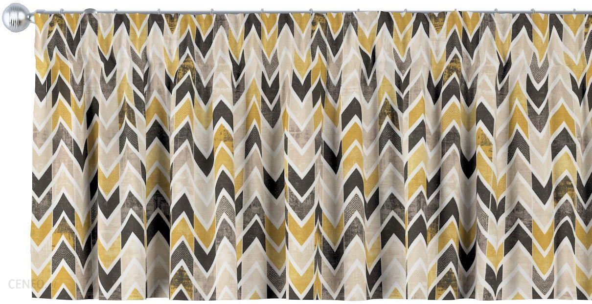 Dekoria Lambrekin na taśmie marszczącej musztardowo czarno beżowe zygzaki na jasnym tle 260x40cm Modern