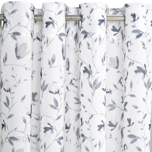 Zasłona zdobiona kwiatowym nadrukiem oraz srebrną nicią , szerokość: 140 cm, długość: 250 cm, kolor BIAŁY/STALOWY, Skład: 100% poliester
