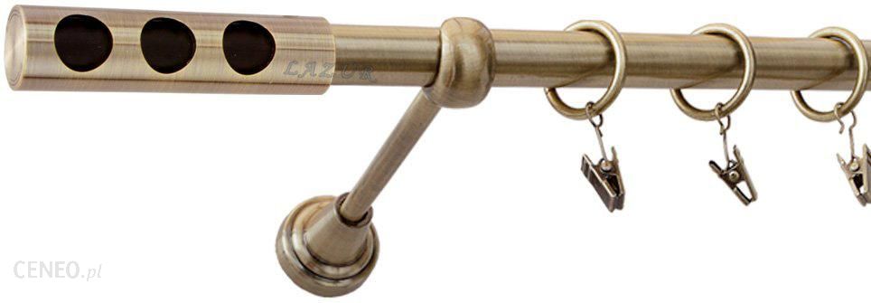 Lazur Karnisz Dawi Antyk Mosiądz, Pojedynczy 19 Rura Gładka 140cm