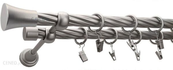 Lazur Karnisz Monaco Satyna Nikiel, Podwójny 19 + 19 Rura Skrętna 200cm