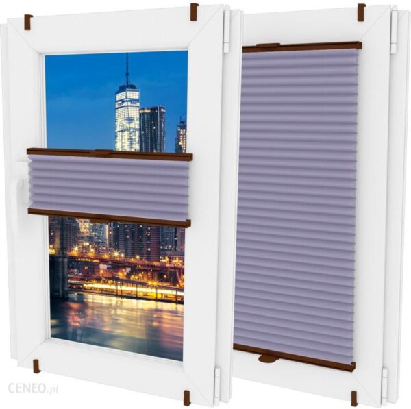 Oslonaokna Roleta plisowana plisa szer: 100cm dł: 0-150cm Kolor tkaniny: Jasnofioletowy Montaż: Inwazyjny Kolor profilu: Brązowy