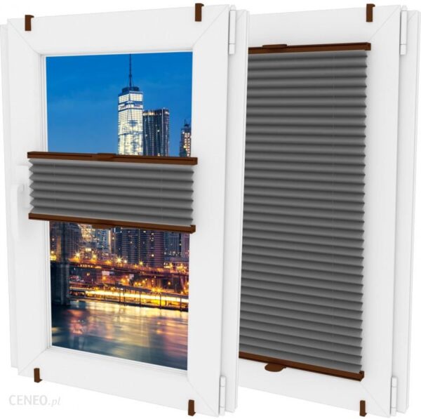 Oslonaokna Roleta plisowana plisa szer: 43cm dł: 0-150cm Kolor tkaniny: Ciemnoszary Montaż: Bezinwazyjny Kolor profilu: Brązowy