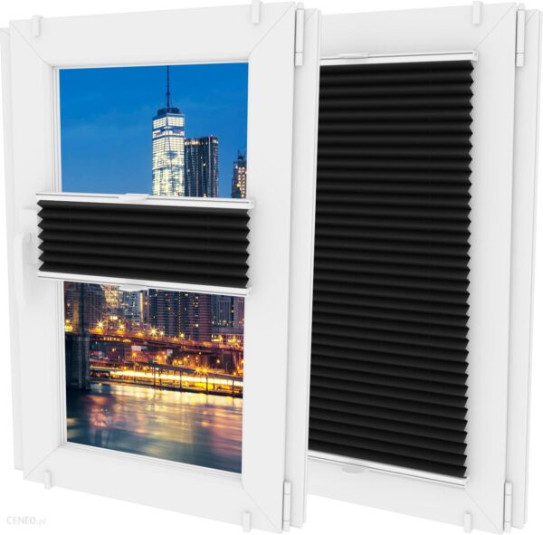 Oslonaokna Roleta plisowana plisa szer: 80cm wys: 151-220cm Kolor tkaniny: Czarny Montaż: Bezinwazyjny Kolor profilu: Biały