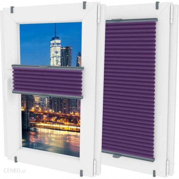 Oslonaokna Roleta plisowana plisa szer: 81cm dł: 0-150cm Kolor tkaniny: Fioletowy Montaż: Inwazyjny Kolor profilu: Szary