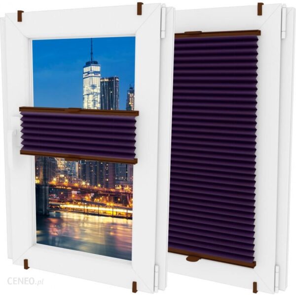 Oslonaokna Roleta plisowana plisa szer: 84cm wys: 151-220cm Kolor tkaniny: Ciemnofioletowy Montaż: Bezinwazyjny Kolor profilu: Brązowy