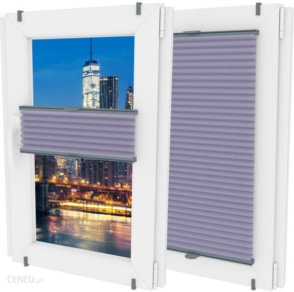 Oslonaokna Roleta plisowana plisa szer: 94cm wys: 151-220cm Kolor tkaniny: Jasnofioletowy Montaż: Bezinwazyjny Kolor profilu: Szary