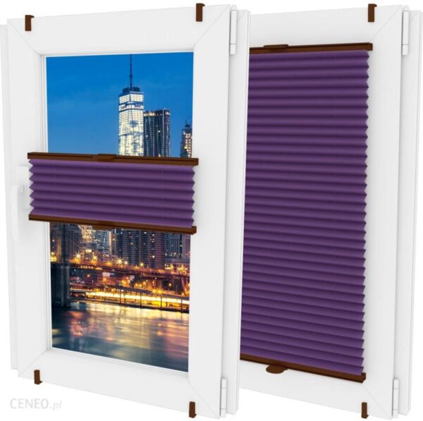 Oslonaokna Roleta plisowana plisa szer: 96cm dł: 0-150cm Kolor tkaniny: Fioletowy Montaż: Bezinwazyjny Kolor profilu: Brązowy
