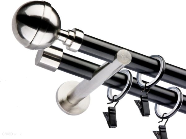KARNISZE – kolekcja VENTO 25 MMKolekcja VENTO charakteryzuje się tym że zakończenia oraz wsporniki koloru stali nierdzewnej łączą się z drążkiem oraz żabkami malowanym proszkowo w kolorze białym lub czarnym.Połączenie tych kolorów wpływa nie tylko na wygląd, styl czy charakter wnętrza, ale przede wszystkim na samopoczucie domowników.Estetyczne a zarazem funkcjonalne wsporniki otwarte, mocowane do ściany lub sufitu, sprawiają że założenie poprzecznego drążka jest bardzo proste.Występują w dwóch wersjach jako karnisz pojedynczy lub podwójny.Zakończenia oraz wsporniki łączymy do wyboru z drążkiem biały połysk lub czarny mat.Karnisze w całości występują w rozmiarach: 120, 130, 140, 160, 180, 200, 220, 240 cm.Karnisze powyżej 240 cm są łączone w rozmiary: 260, 280, 300, 320, 340, 360, 380, … , 720 cm.W przypadku jeśli jest wymagana inna długość, np. 310 cm proszę dopisać w uwagach na jaki rozmiar przyciąć karnisz.W kolekcji VENTO 25 mm, mamy do wyboru sześć zakończeń:Beluno,Cylinder,Kula max,Koloseo,Luna,